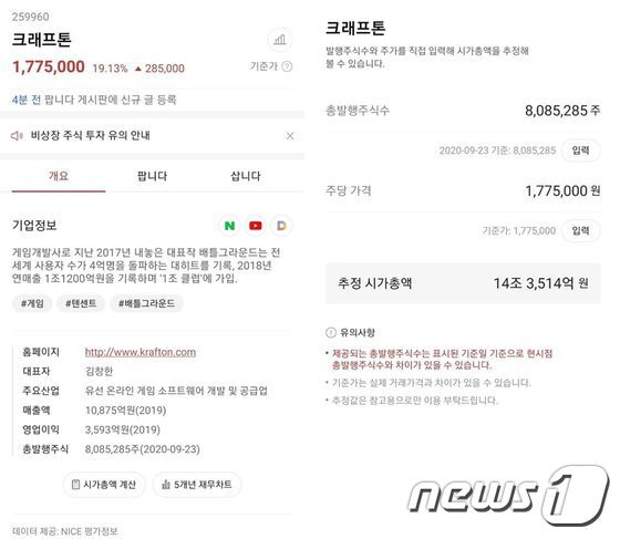 크래프톤 상장예비심사 승인…중복청약·따상 기대해도 되나. 공모주 대어 '크래프톤', 상장예비심사 통과…장외시장 주가 54만원. '코스닥' 아닌 '코스피' 입성 예고. 크래프톤 주주토론방,크래프톤 기업개요,크래프톤 현재가,크래프톤 주가,크래프톤 관련뉴스,크래프톤 주식,크래프톤 기업가치,크래프톤 실적,크래프톤 주당순이익,크래프톤 매출,크래프톤 상장,장외시장. 특히 김 대표는 주식매수선택권(스톡옵션)을 86만8245주 보유해 이. '크래프톤 관련주' wi, 3거래일 만에 하락세. 16일 크래프톤은 금융당국에 제출한 증권신고서를 통해 중국 텐센트가 개발·서비스하고 있는 화평정영에 대한 기술. 노트부터 마우스 패드, 스트레스볼, 페이퍼 디퓨저까지… 크래프톤, 독립스튜디오 라이징윙스…통합 법인으로 새출발. 업계는 크래프톤 상장 후 시가총액을 40조 원으로 전망하는데, 이는 단숨에 코스피 시장 6위권대 진입도 가능한 수치다. 크래프톤 무시하시는 분들이 많네요 7. 크래프톤, 증권신고서 제출… 중복 청약 가능해진다. 경기도 성남시 분당구 분당내곡로 117, 9층 (백현동, 크래프톤 타워).